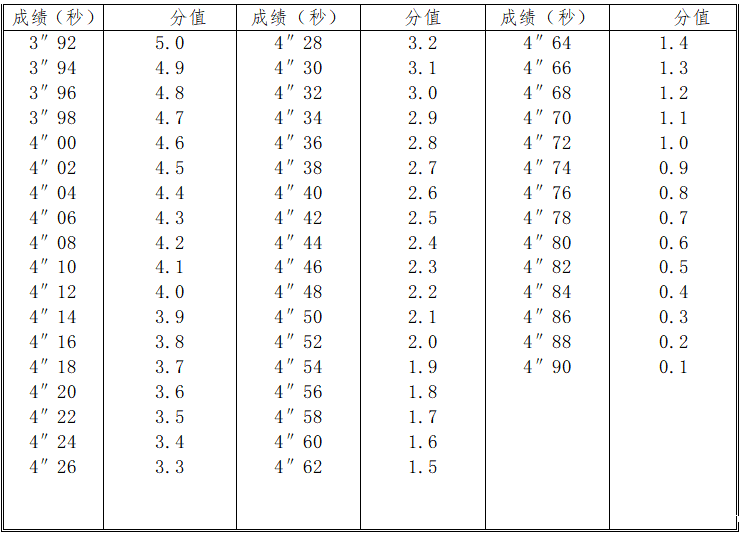 立定跳远评分表