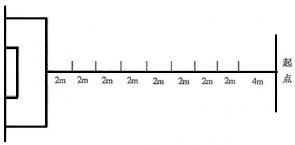 考生每人连续试跳2次,每次均丈量有效成绩。丈量成绩时,以考生身体任何部位着地最近点量至起跳线或起跳延长线的垂直距离。丈量的最小单位为1厘米,以两次试跳中的最优成绩为决定成绩。