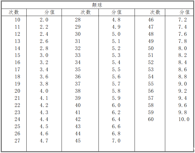 颠球与过杆射门成绩评分表
